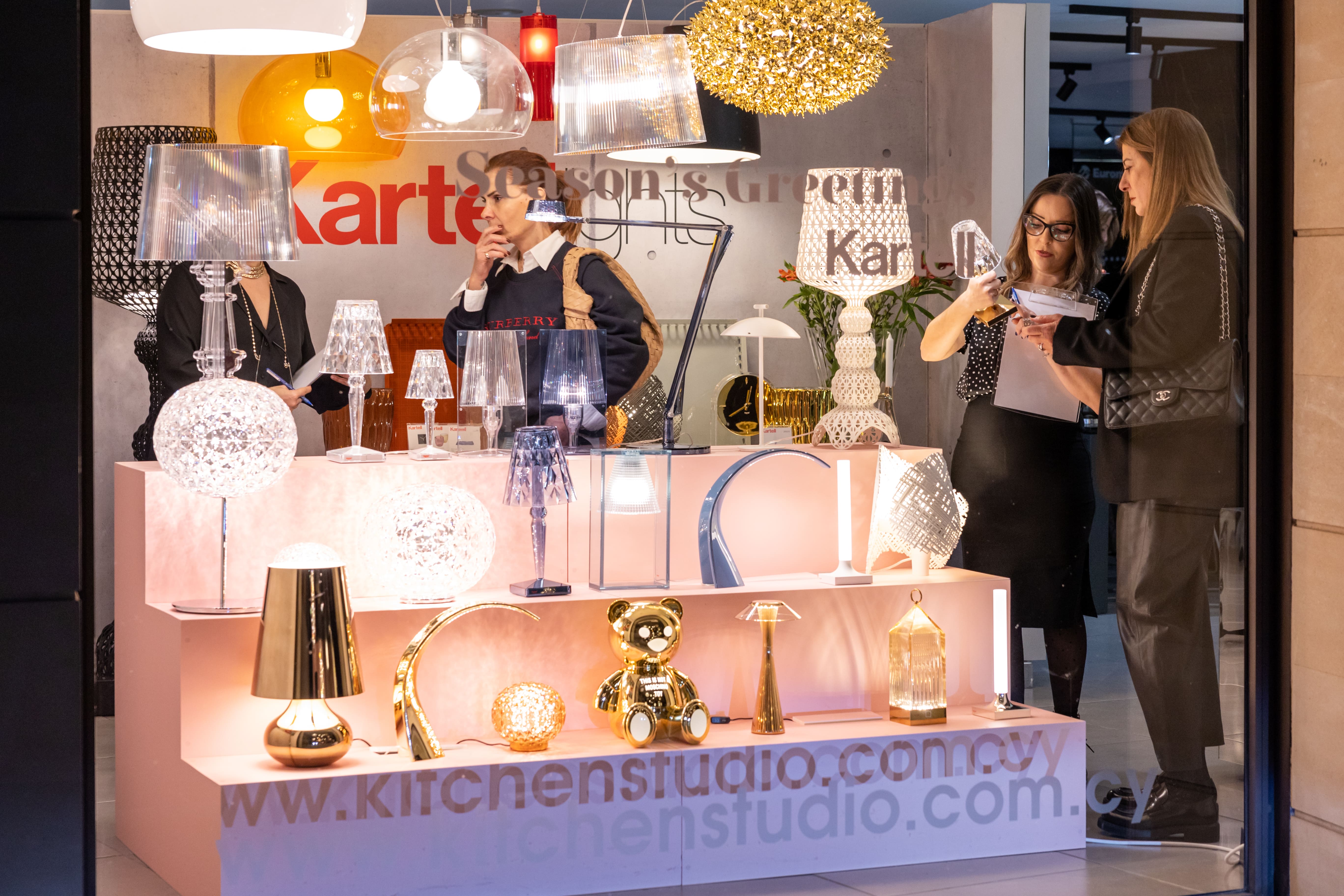 Guests wandered around the Kitchen Studio | Living & More showroom, immersing themselves into the Kartell Shop-In-Shop Larnaca experience, surrounded by iconic works of well-known, distinguished designers, associated with the brand.