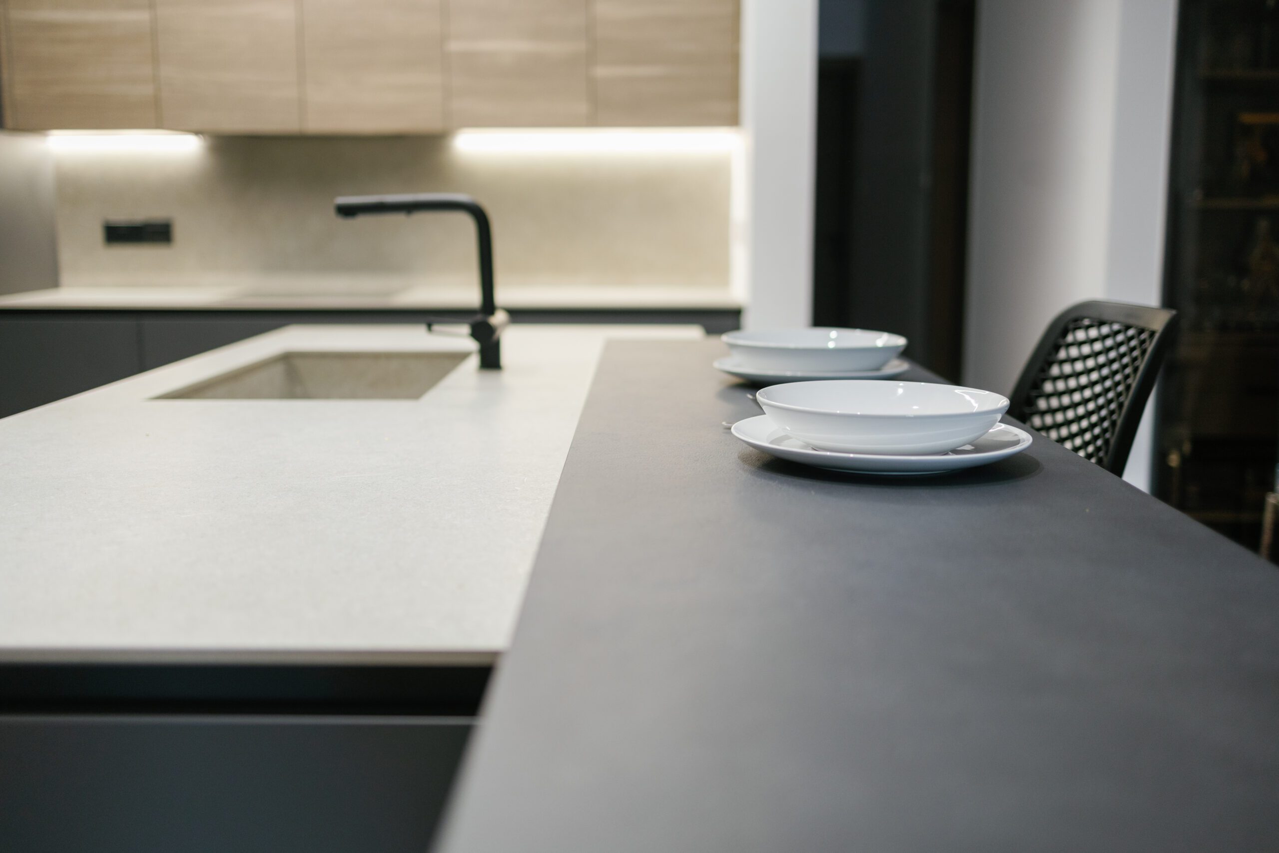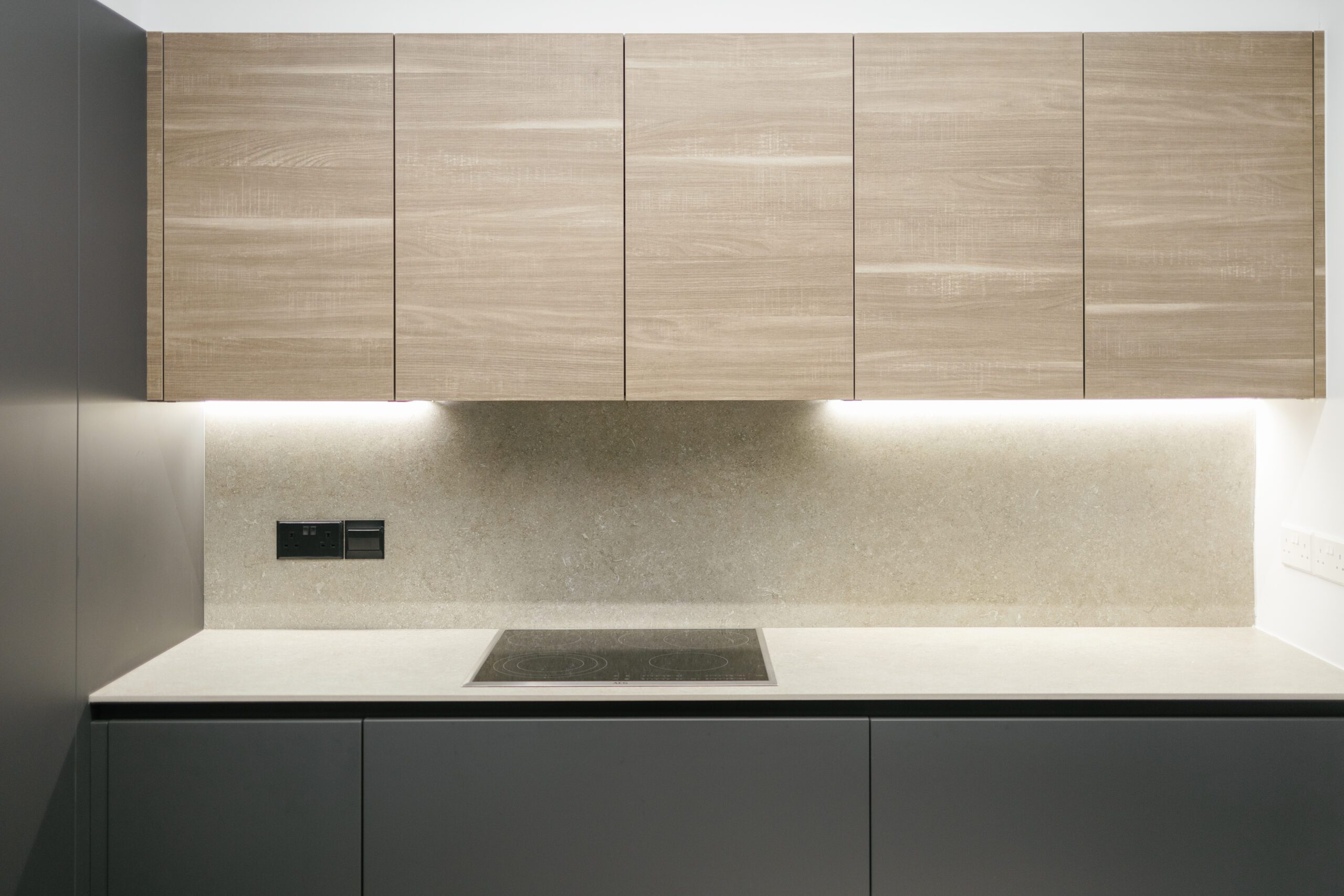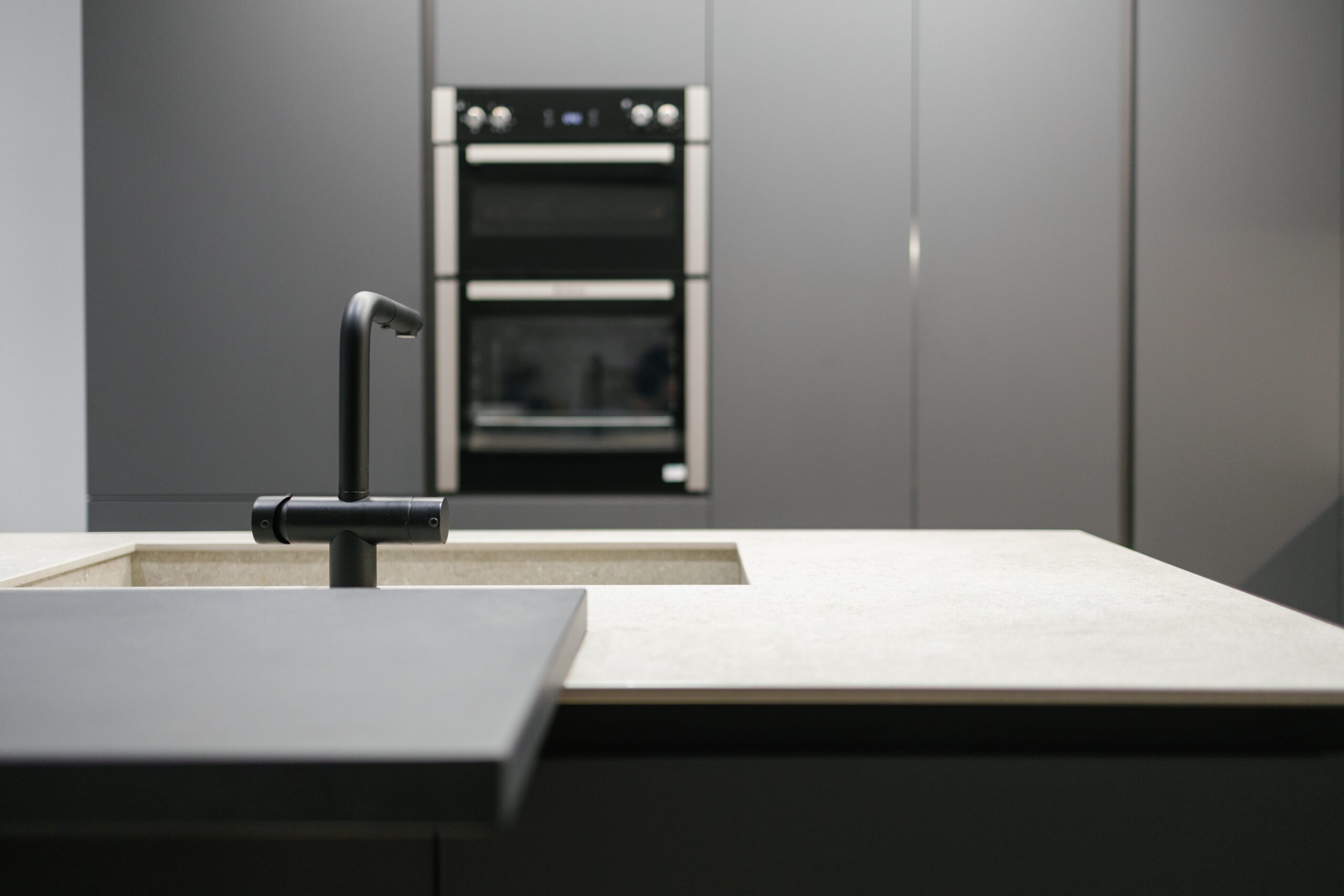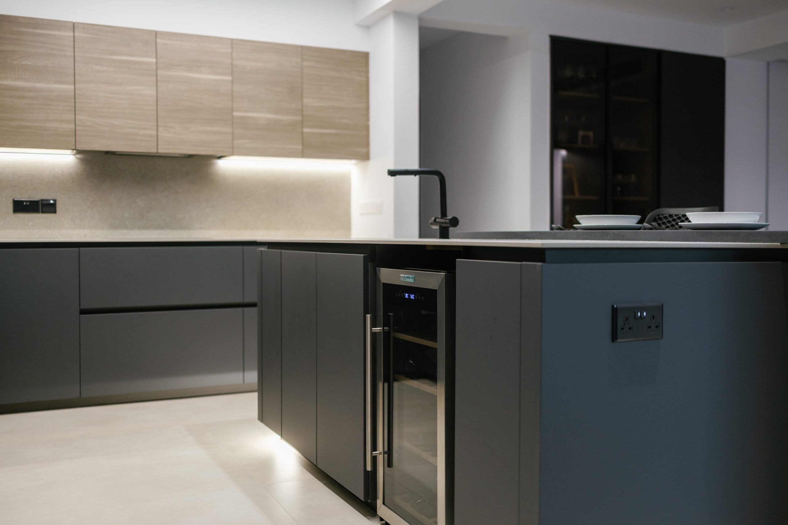 At Kitchen Studio, we’re thrilled to showcase our latest project featuring the Zecchinon Cucine Kalea and Tiffany kitchen models. This stunning design combines the smooth and contemporary Antracite Super Matt finish with the warmth of the wooden-effect melamine in Rovere Sinai finish.