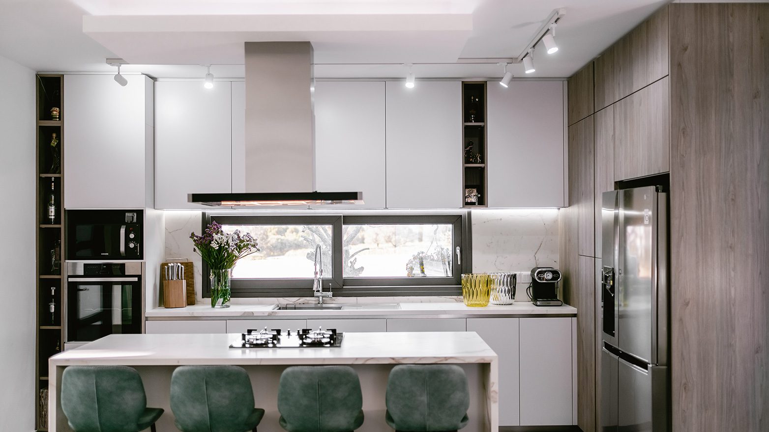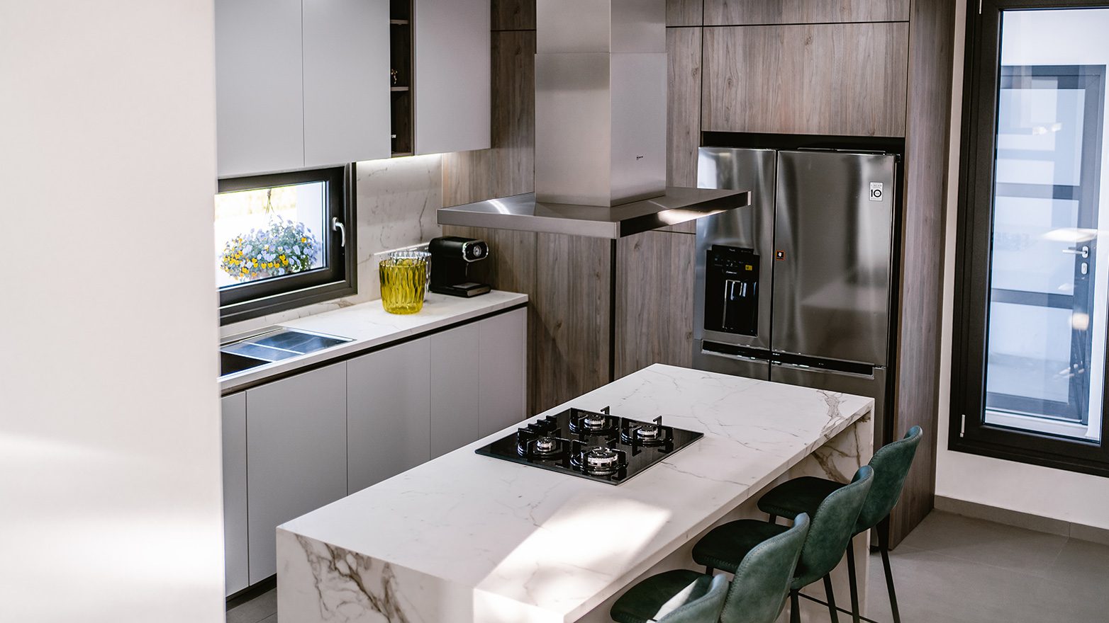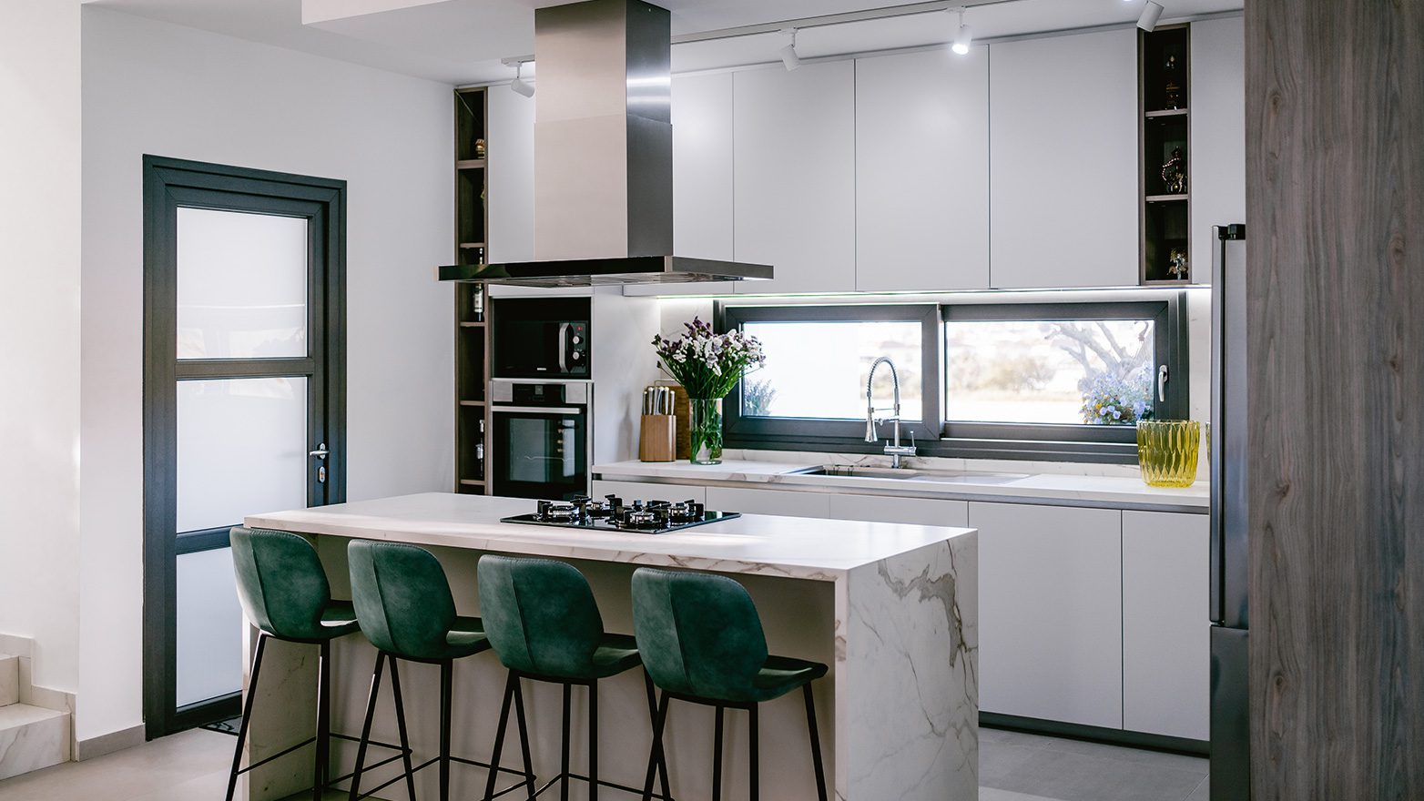 The latest project of Kitchen Studio Living & More Interior Designers at a residence in Alethriko, seeks new ways of expression in contemporary living.