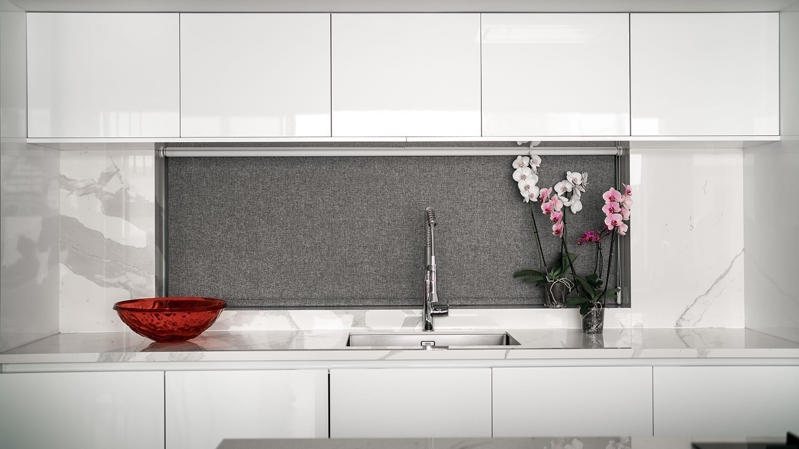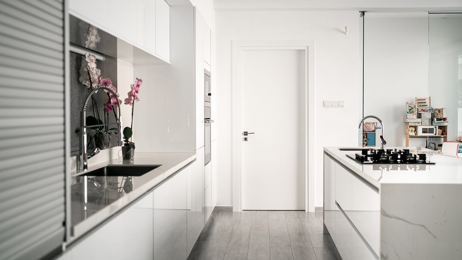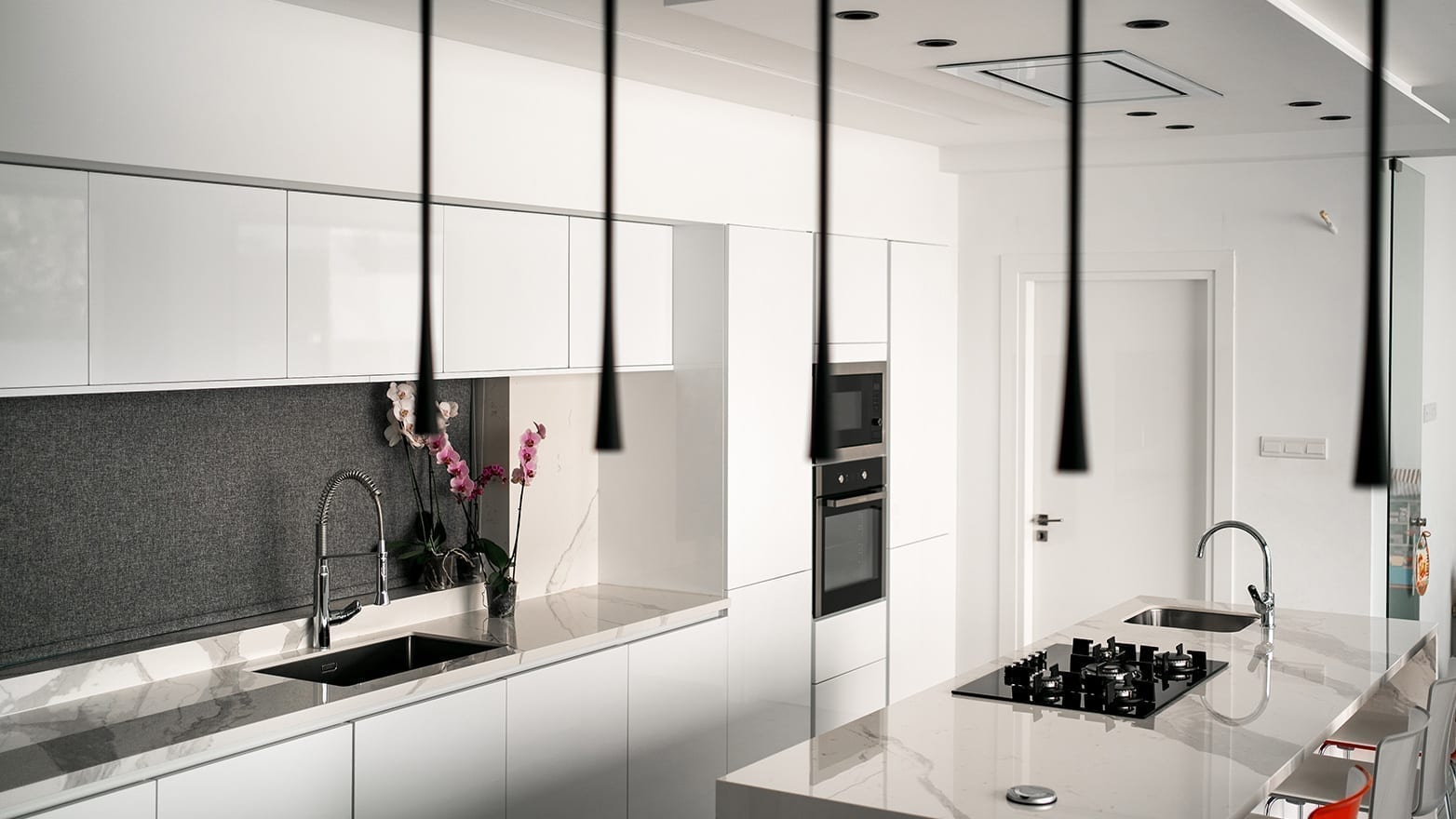 The clean profile that defines the project is attributed to the smooth neve blanco finish, applied in all modules on the island and peripherally with indirect effect of creating an harmonious antithesis.