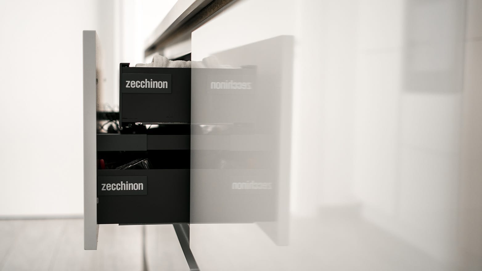 Zecchinon Cucine’s Kalea model and opening System Kappa was used in development of the new kitchen to create an aesthetically exceptional environment and to assure functionality in all levels.