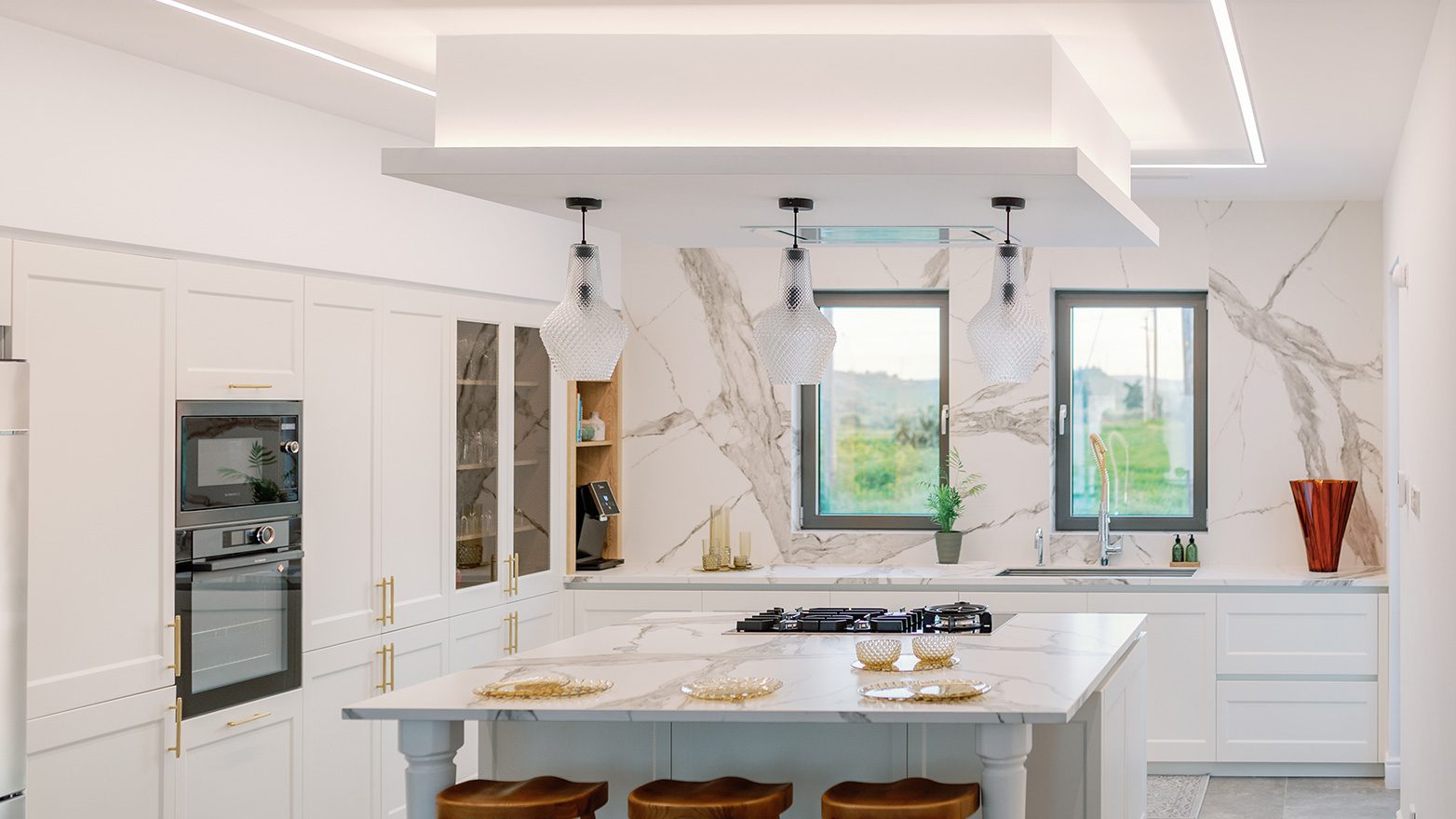 Kitchen Studio Living & More Interior Designers’ latest kitchen project takes place in a modern residence in Kalo Chorio, in the Larnaca countryside.