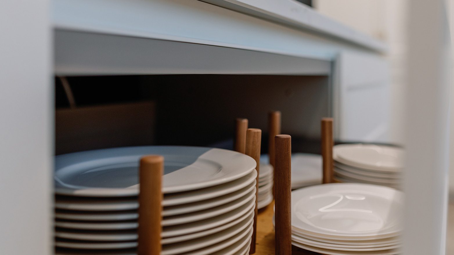 The addition of brass handles makes for a classy and elegant detail that enhances the overall effect of the white kitchen. While, different elements in light wood embrace a natural feel in the everyday environment.