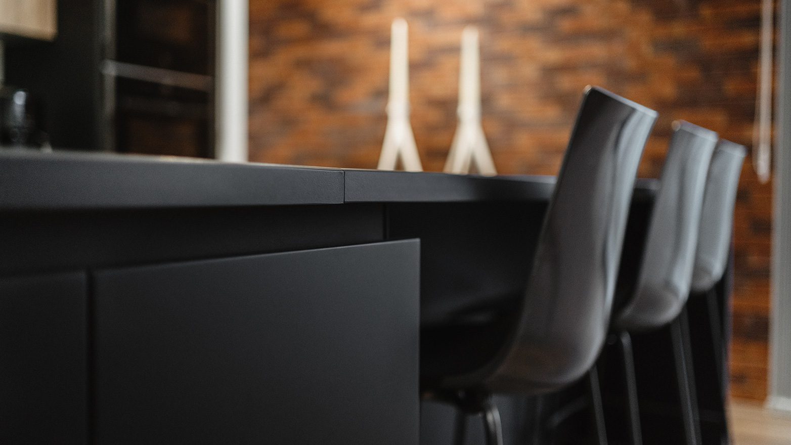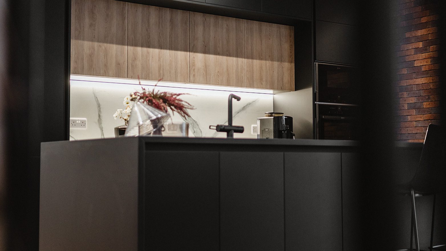 The new kitchen profile is founded in a dark aesthetic, in which wood works as a contrast point with titanium, leading to an atmospheric everyday experience.