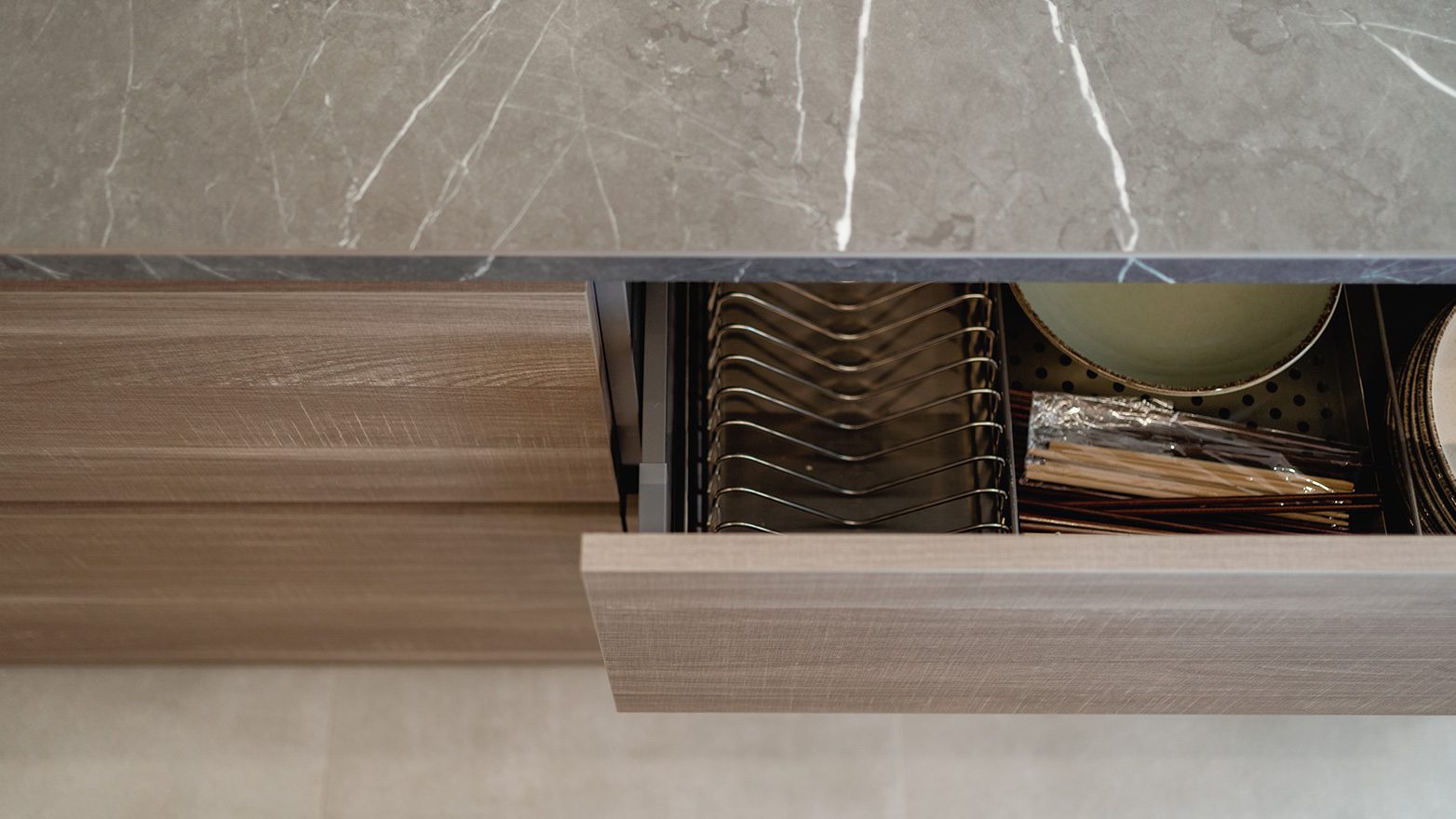 The Tiffany kitchen model by Zecchinon Cucine is selected to ensure optimum functionality and to create different levels of experience.