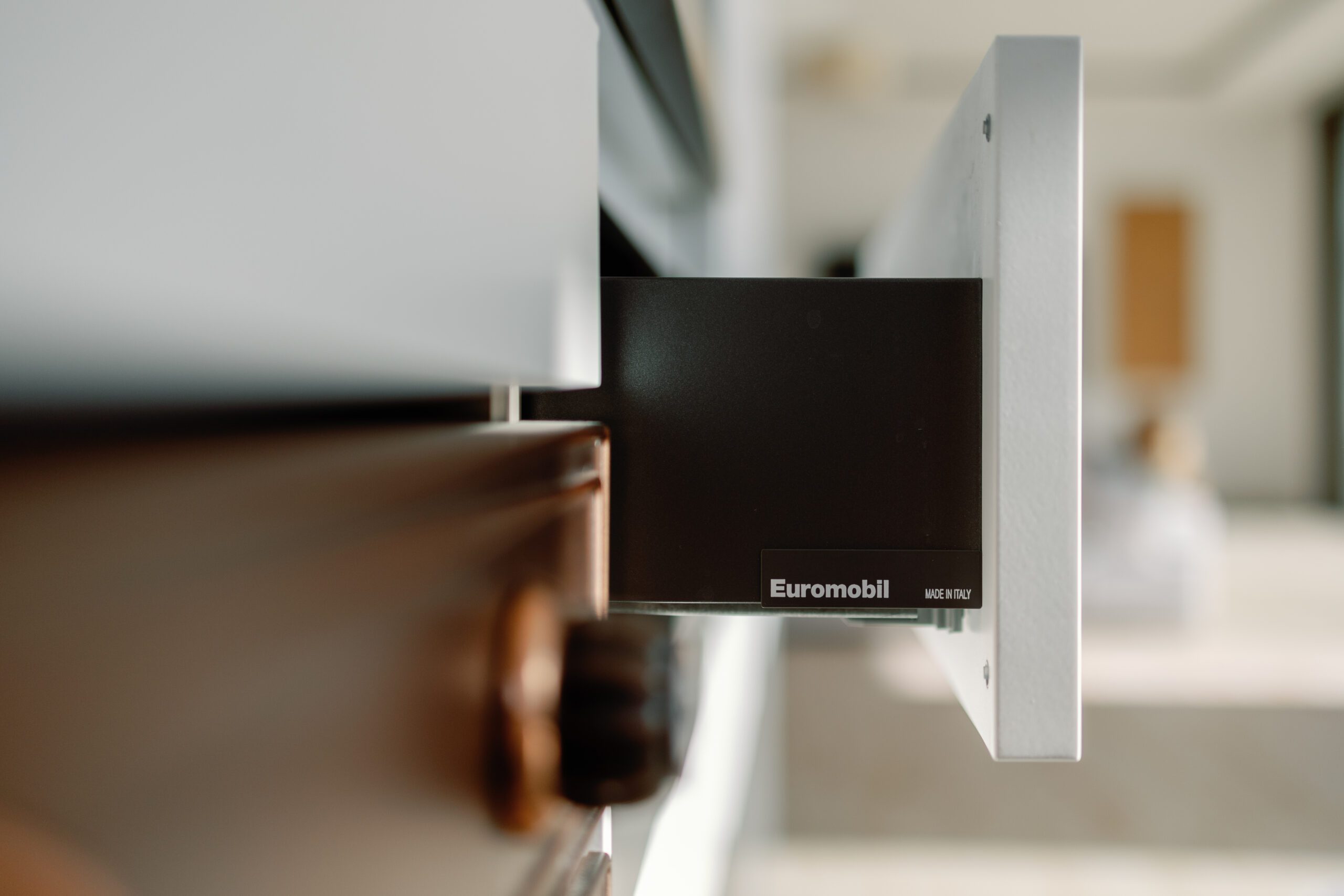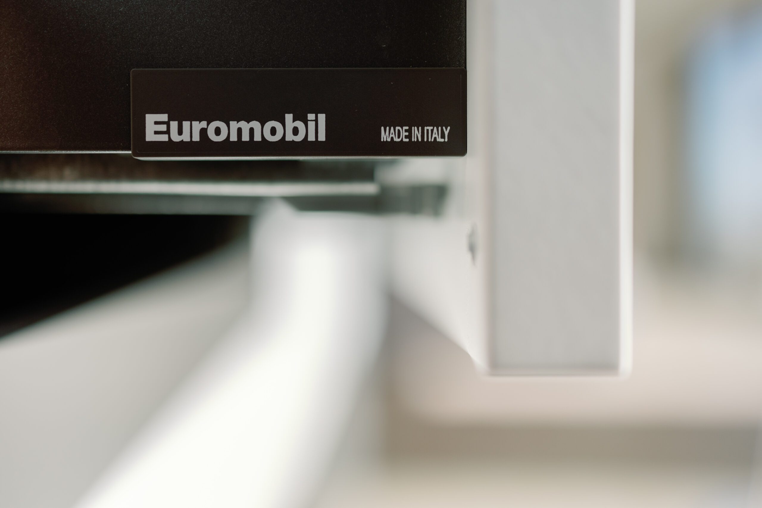 Filo Lain Model by Euromobil in matt colour finish – White & Teca fume glass.