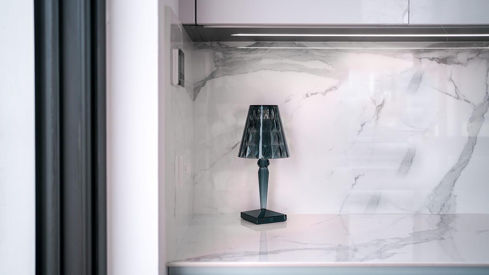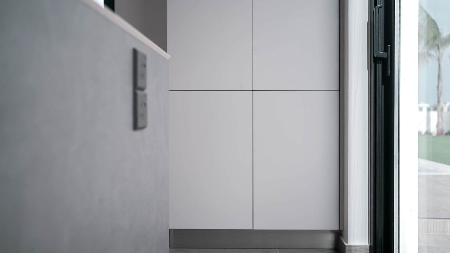 The aesthetic profile assigned to the kitchen, follows a minimal line in view of chromatic selection that nevertheless finds expression through texture interplay and arrangement design.