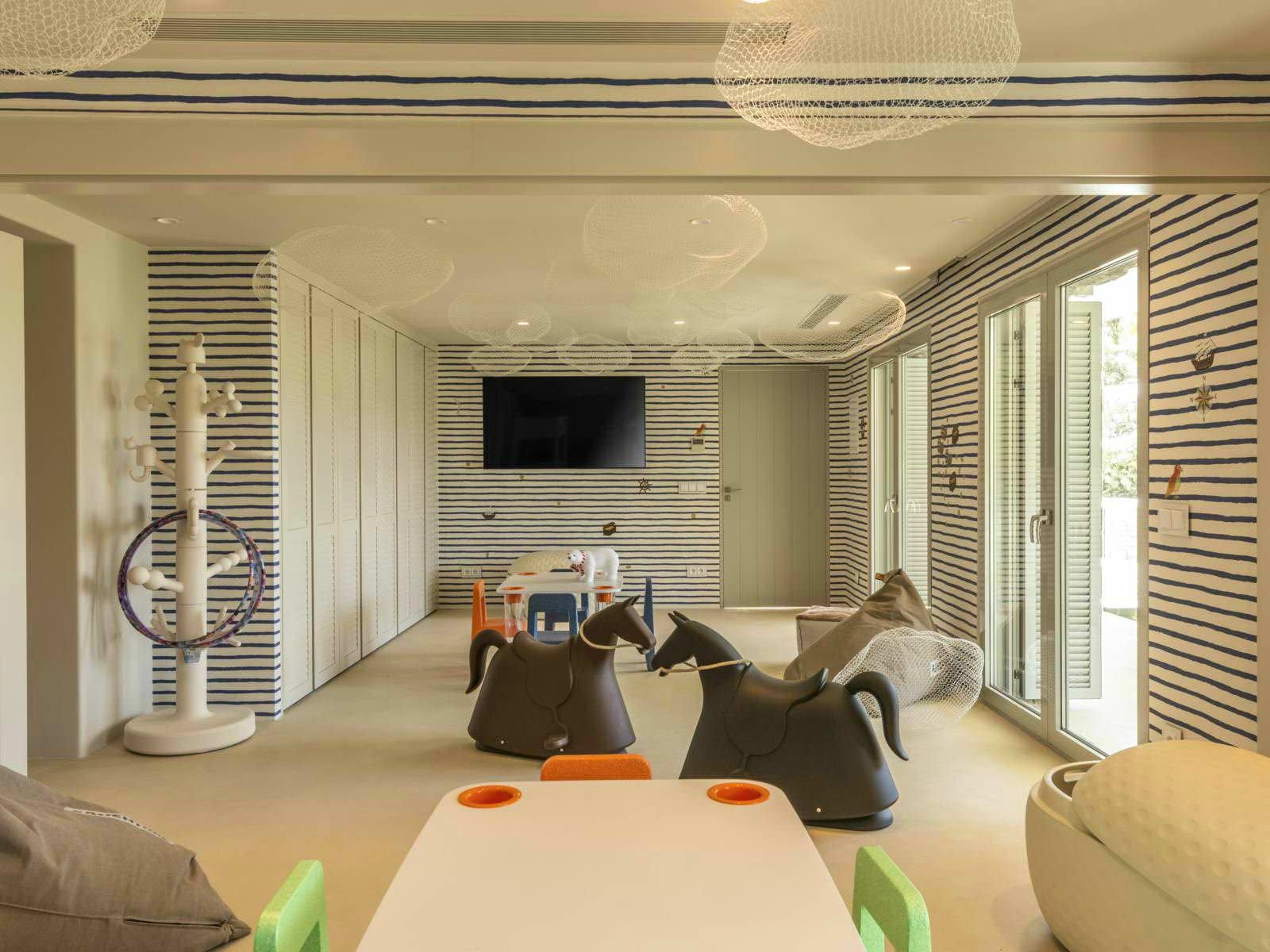 and harmoniously ties together the living area and kid bedroom with a modern aesthetic line, furnished with Desiree and Magis Me Too.