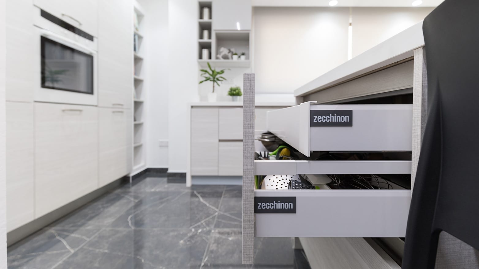 Setting high performance as key throughout the design process, multiple assisted and primary units, drawers and practical systems are designed with the technology and the materials provided by Zecchinon Cucine for a unique kitchen experience.
