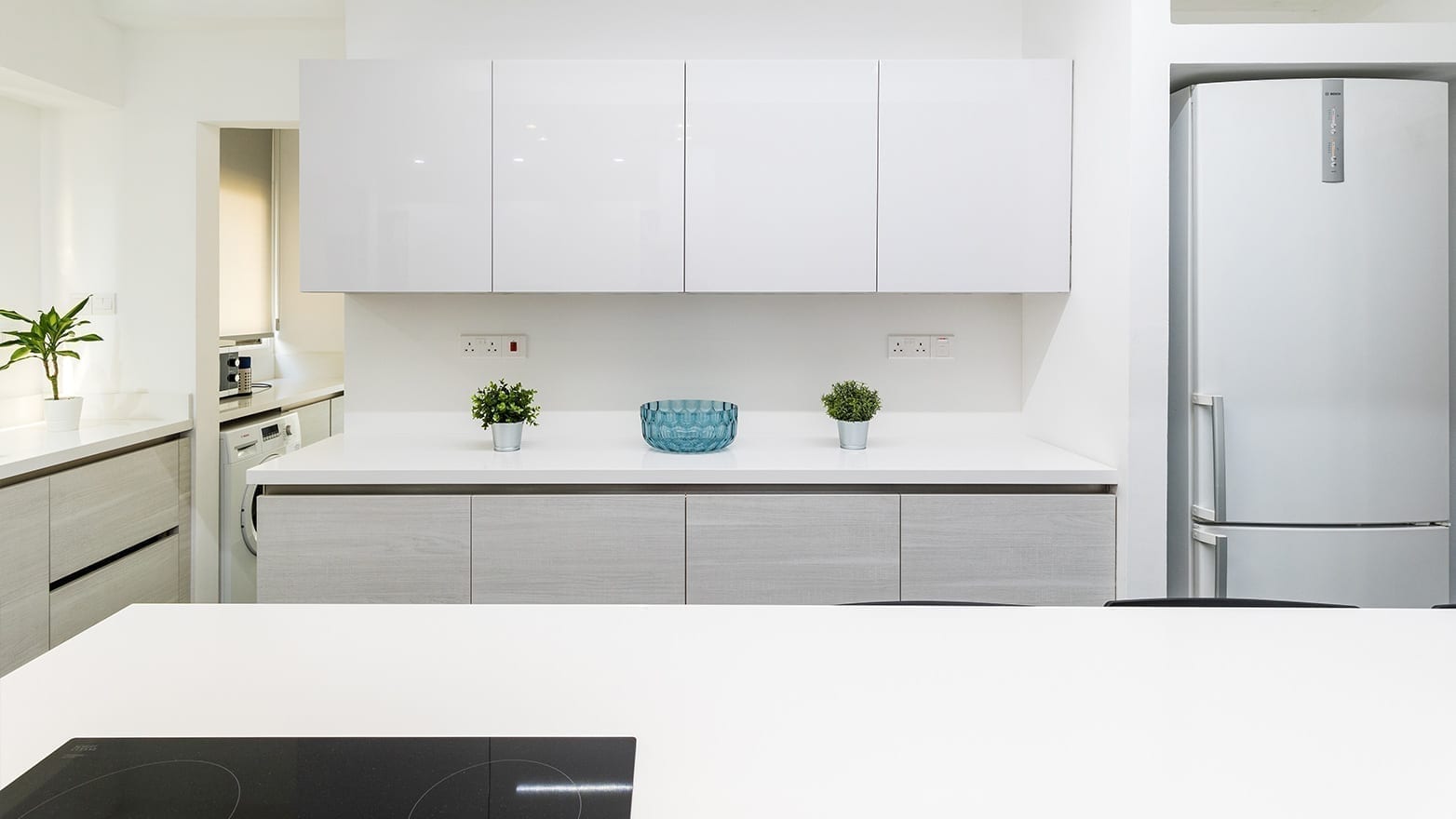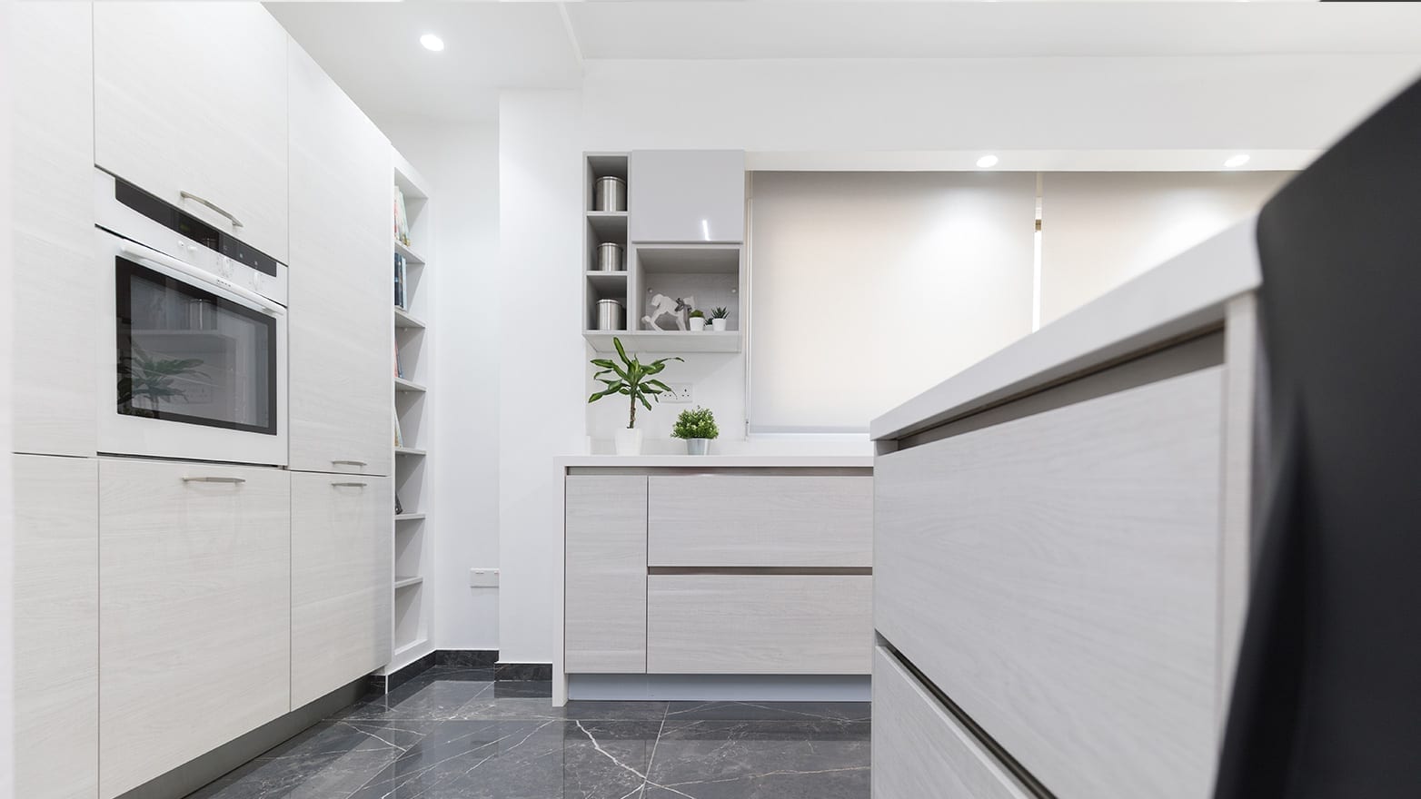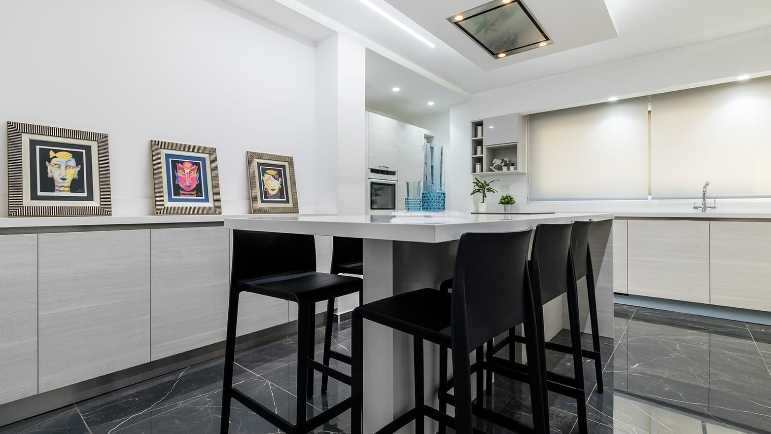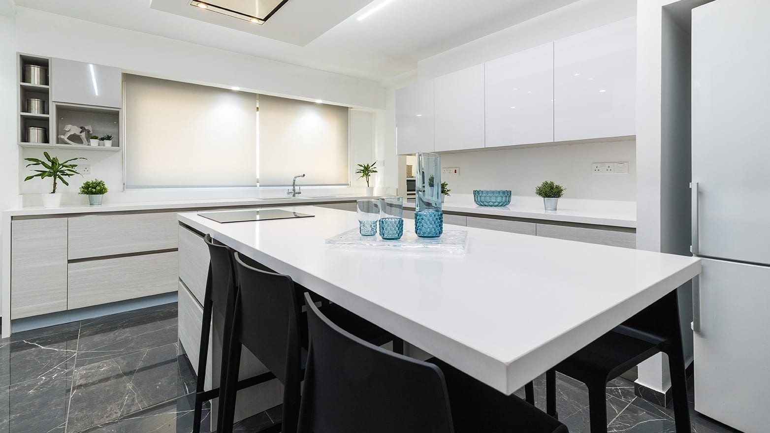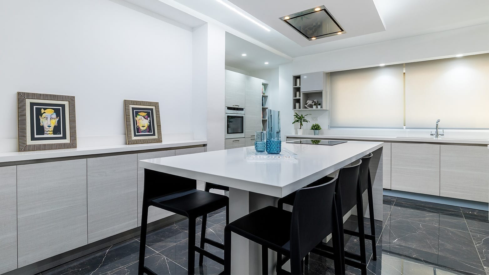 The newest addition in the creative portfolio of Kitchen Studio Living & More Interior Designers, a modern kitchen in a renovated residence at Larnaca