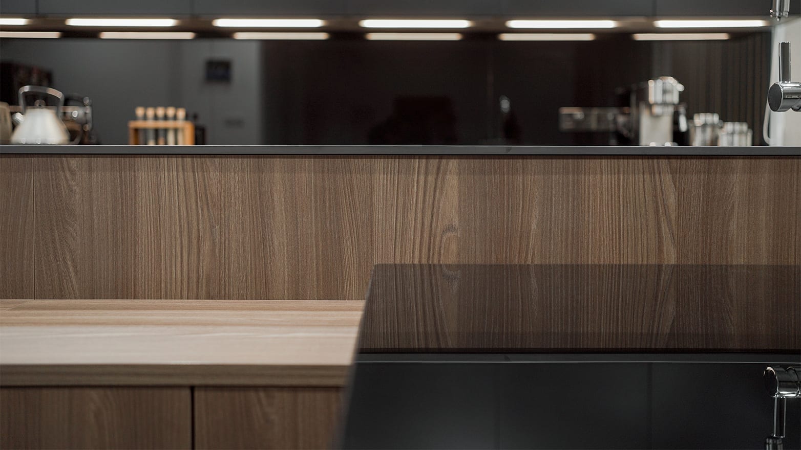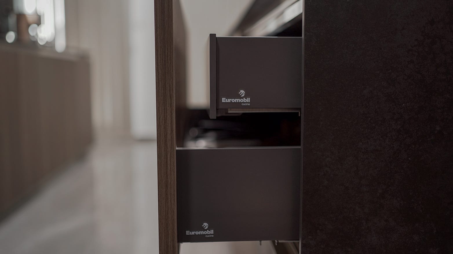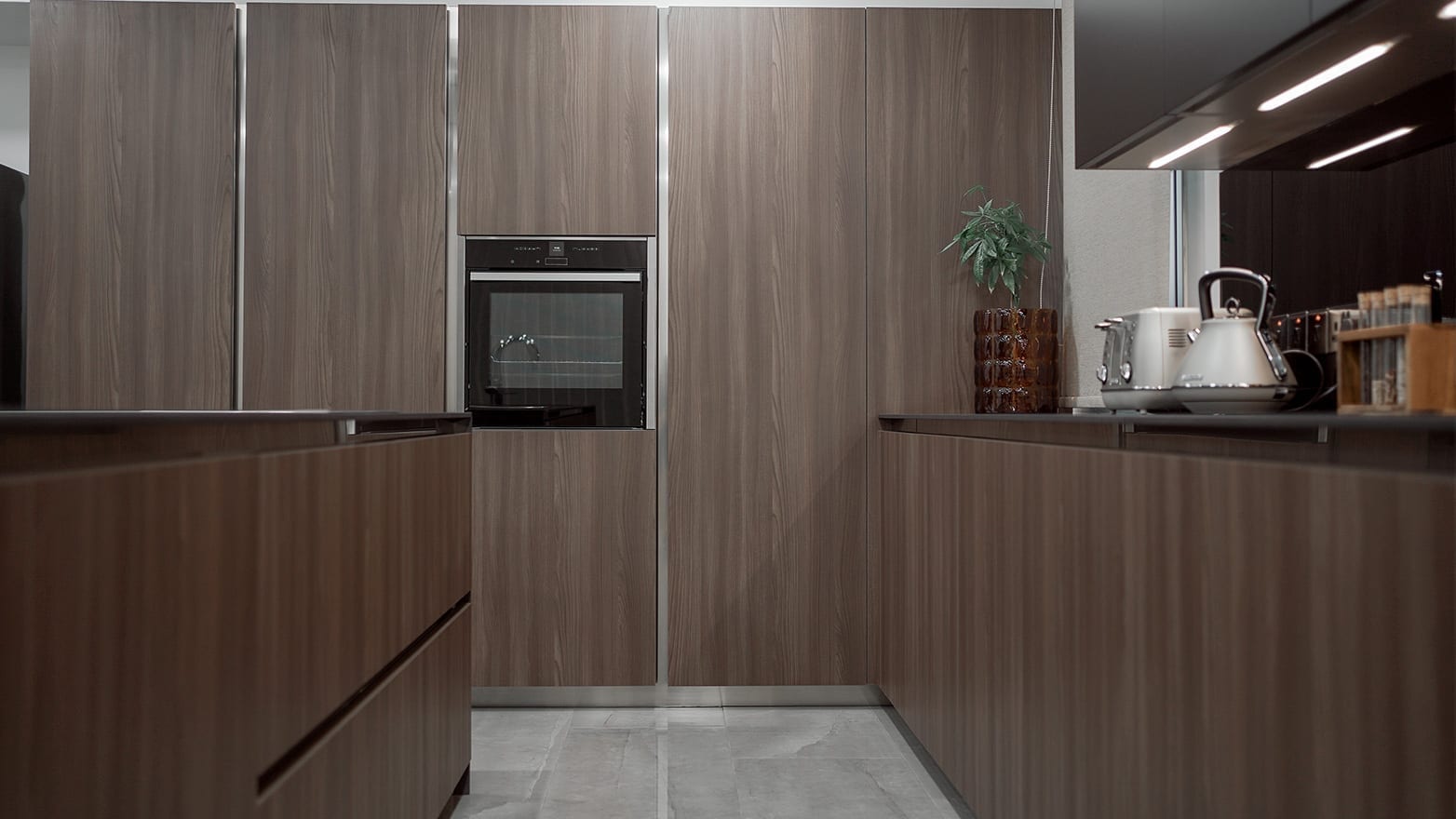 The kitchen is designed with the Filo Lain materials and system from