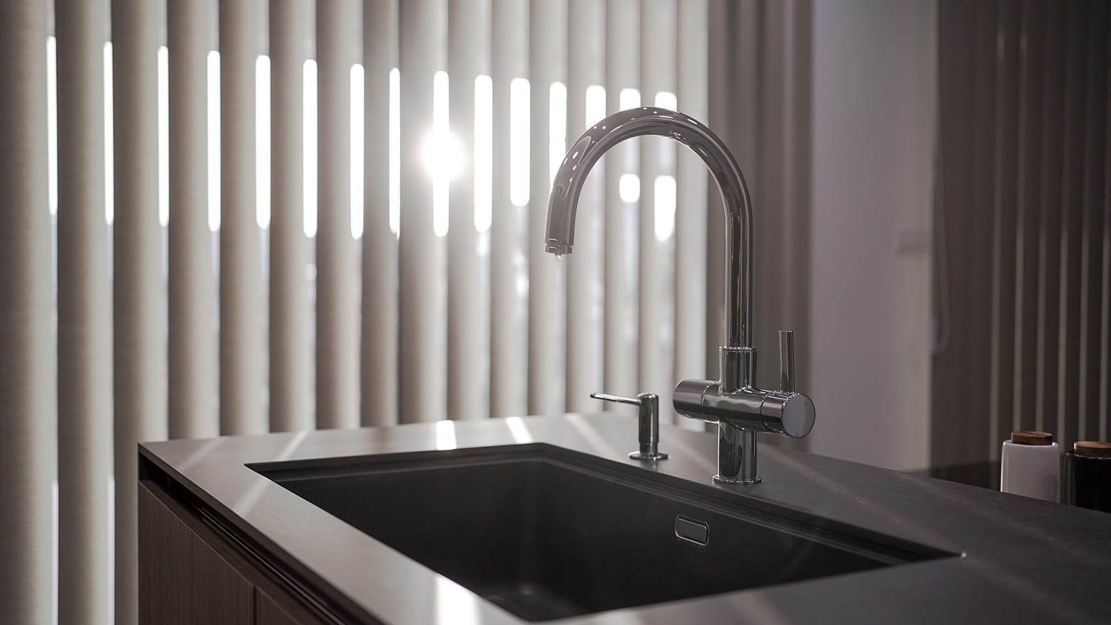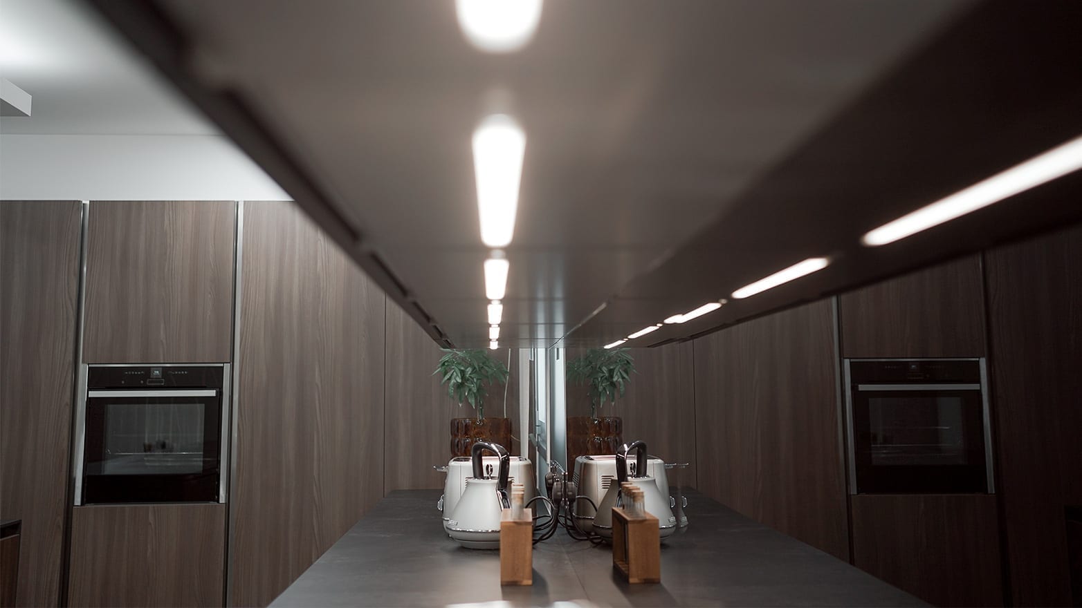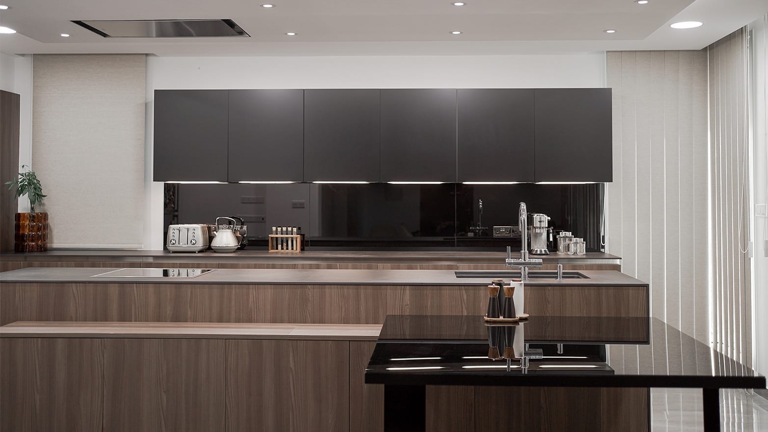 The kitchen is designed with the Filo Lain materials and system from