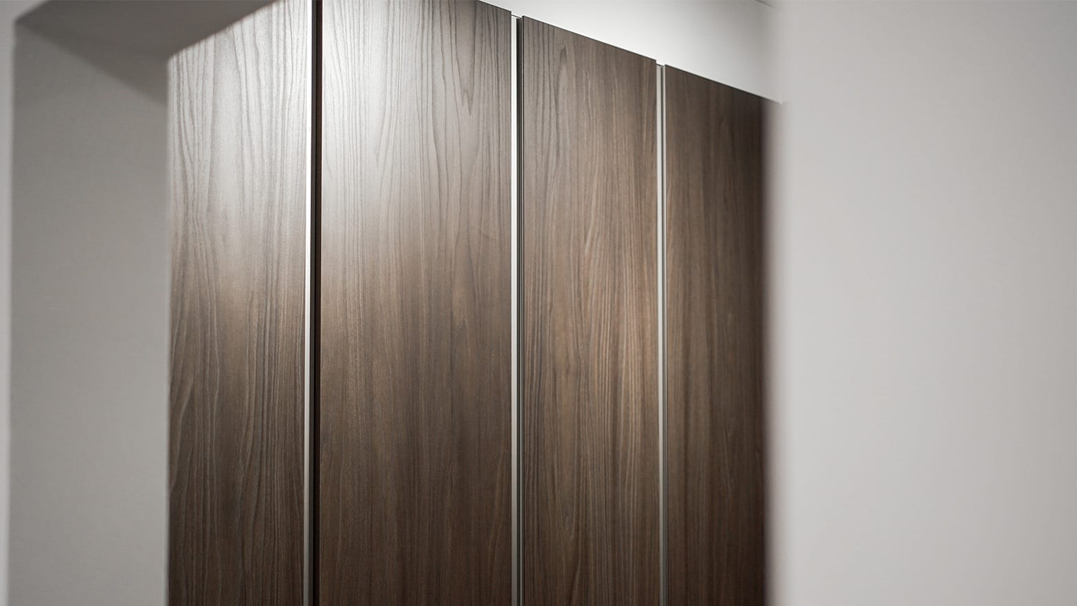 In a seamless transition to the bedroom area, the wardrobe restates the concept of naturality in a dynamic construction of wooden texture developed with the Monopoli and Combi from