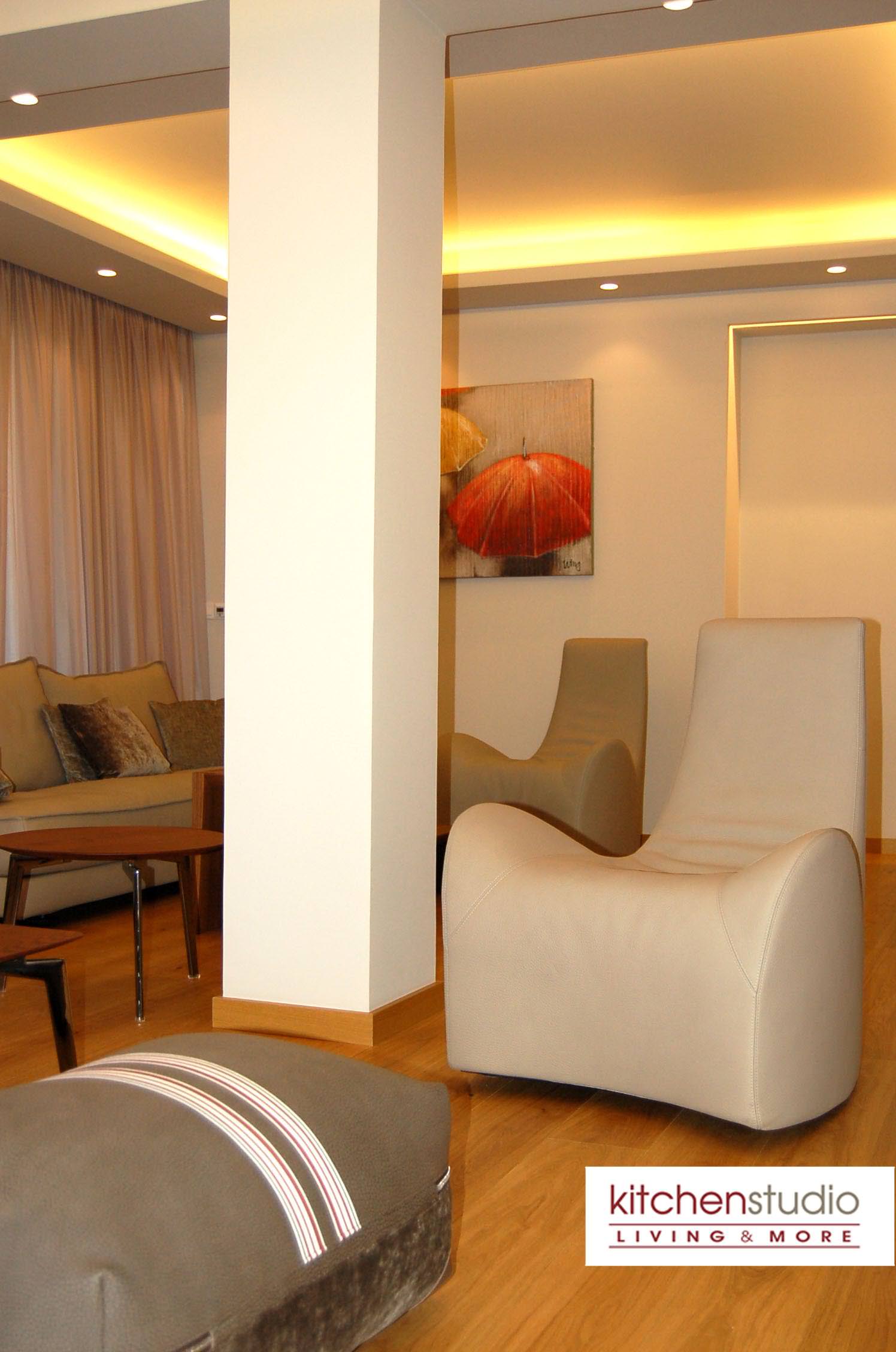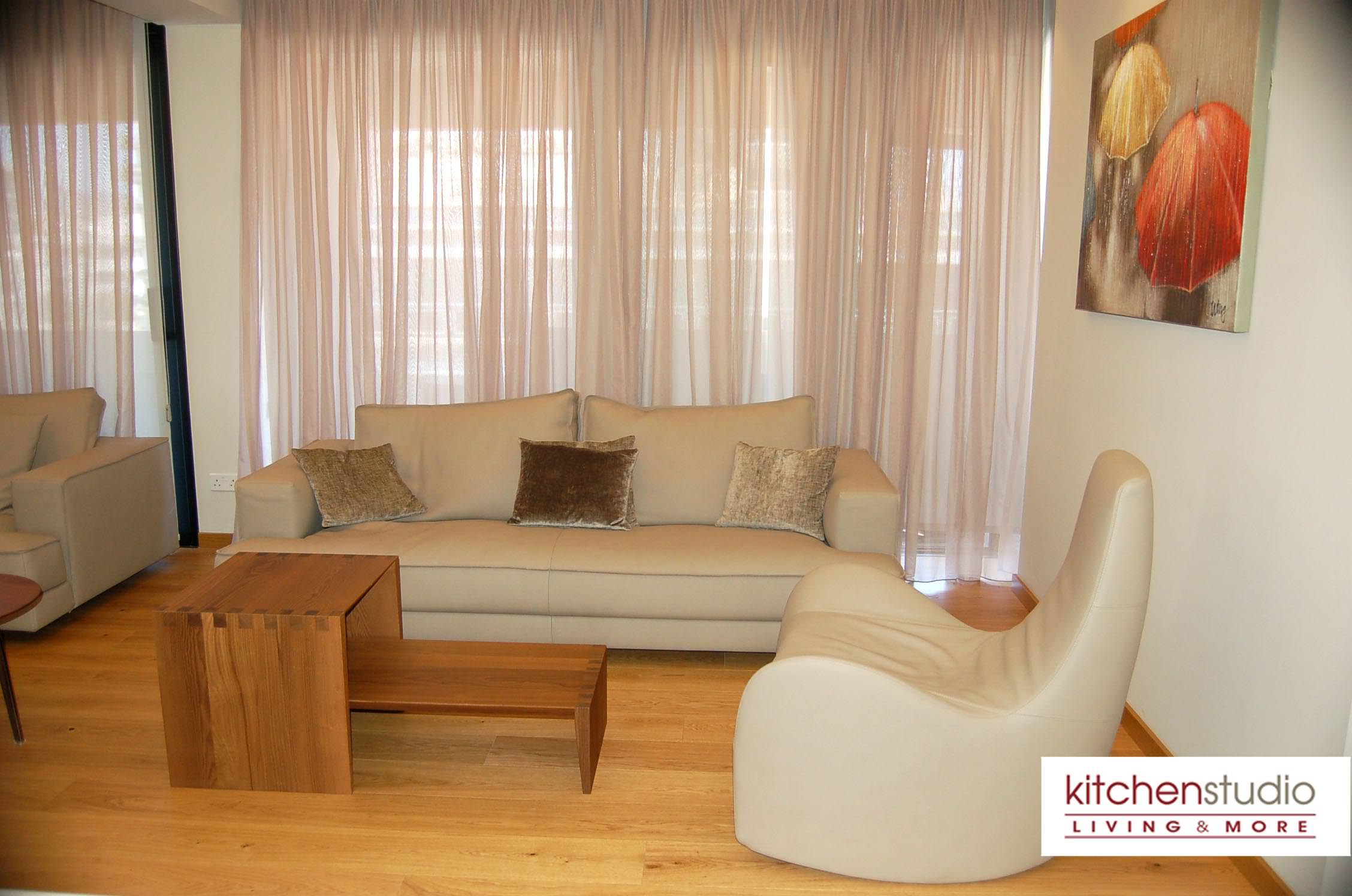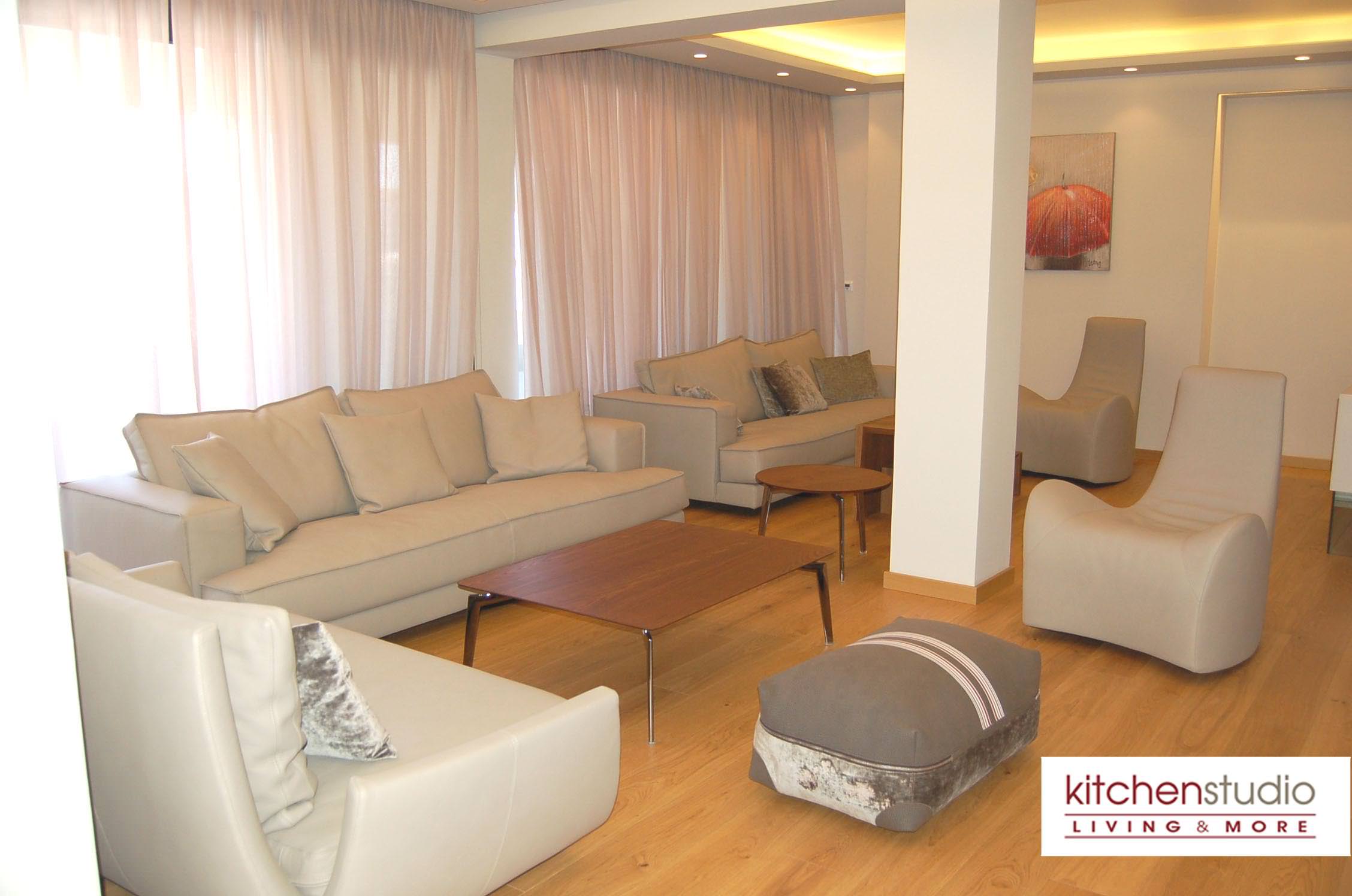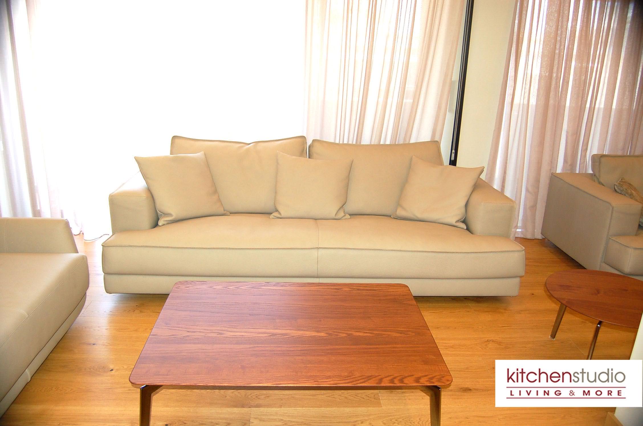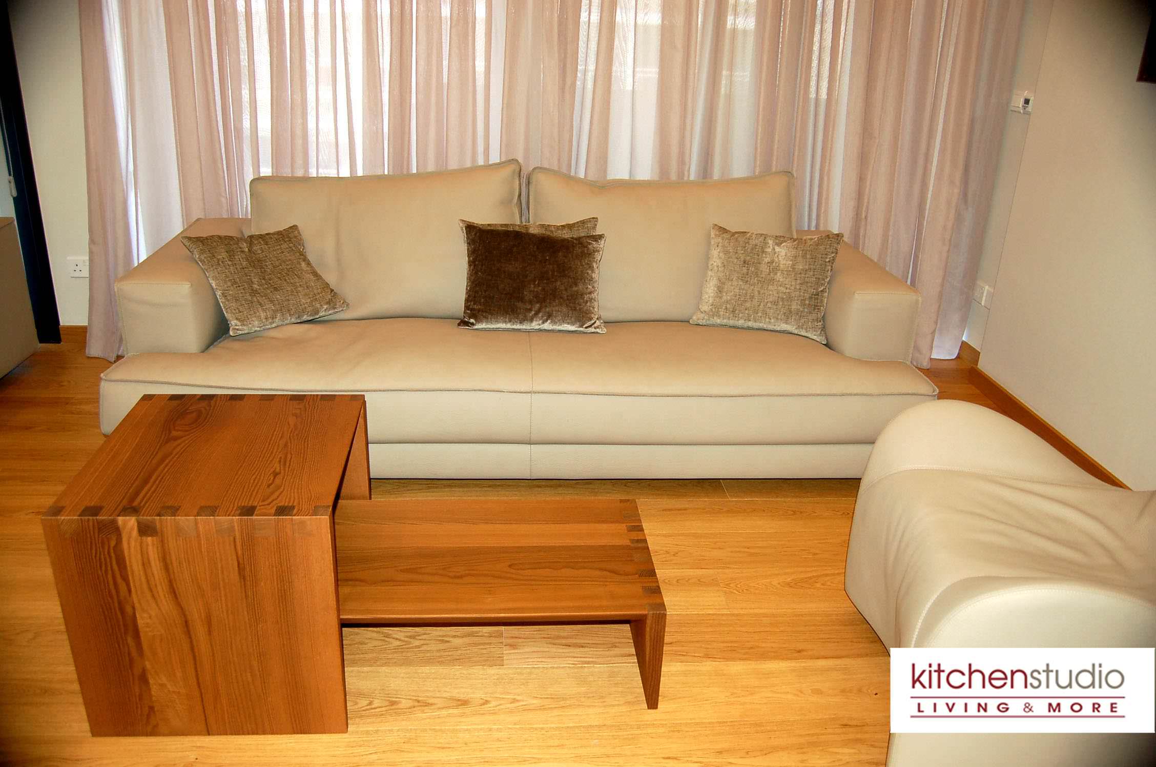An extraordinary living composition. Kitchen Studio Living & More Interior Design team suggests a contemporary design in our newest living project. The spacious living room keeps a simple line, where you will find Gruppo Euromobil‘s Desiree Nathan and Tulis sofas with the elegance and comfort that deserves to the project. The Glow In coffee tables and the TROY lounge chairs complete the project, aimed to bring out its modern character.
