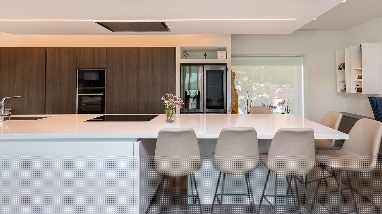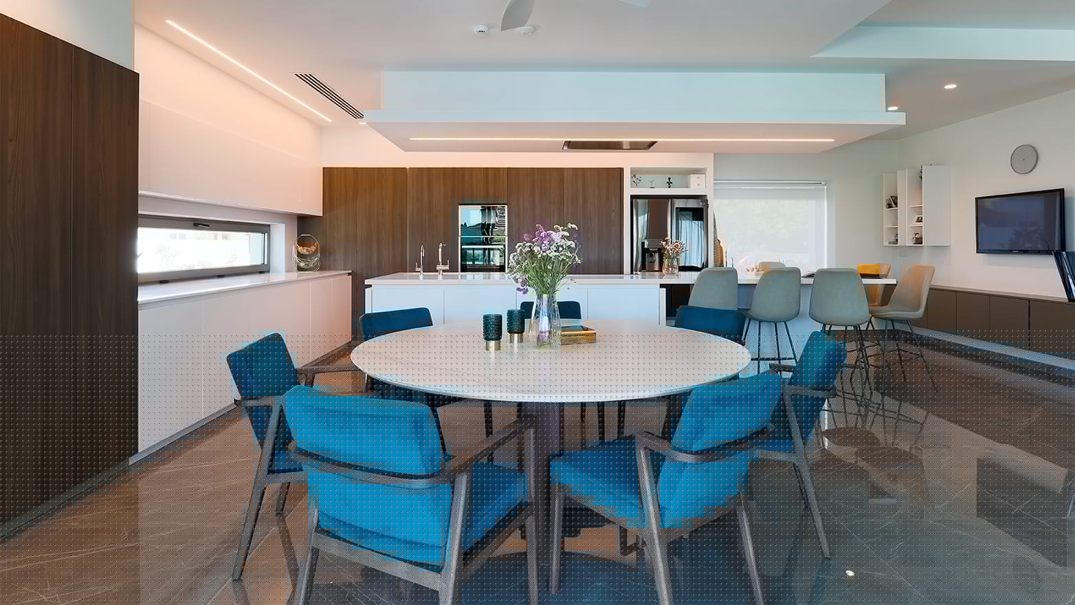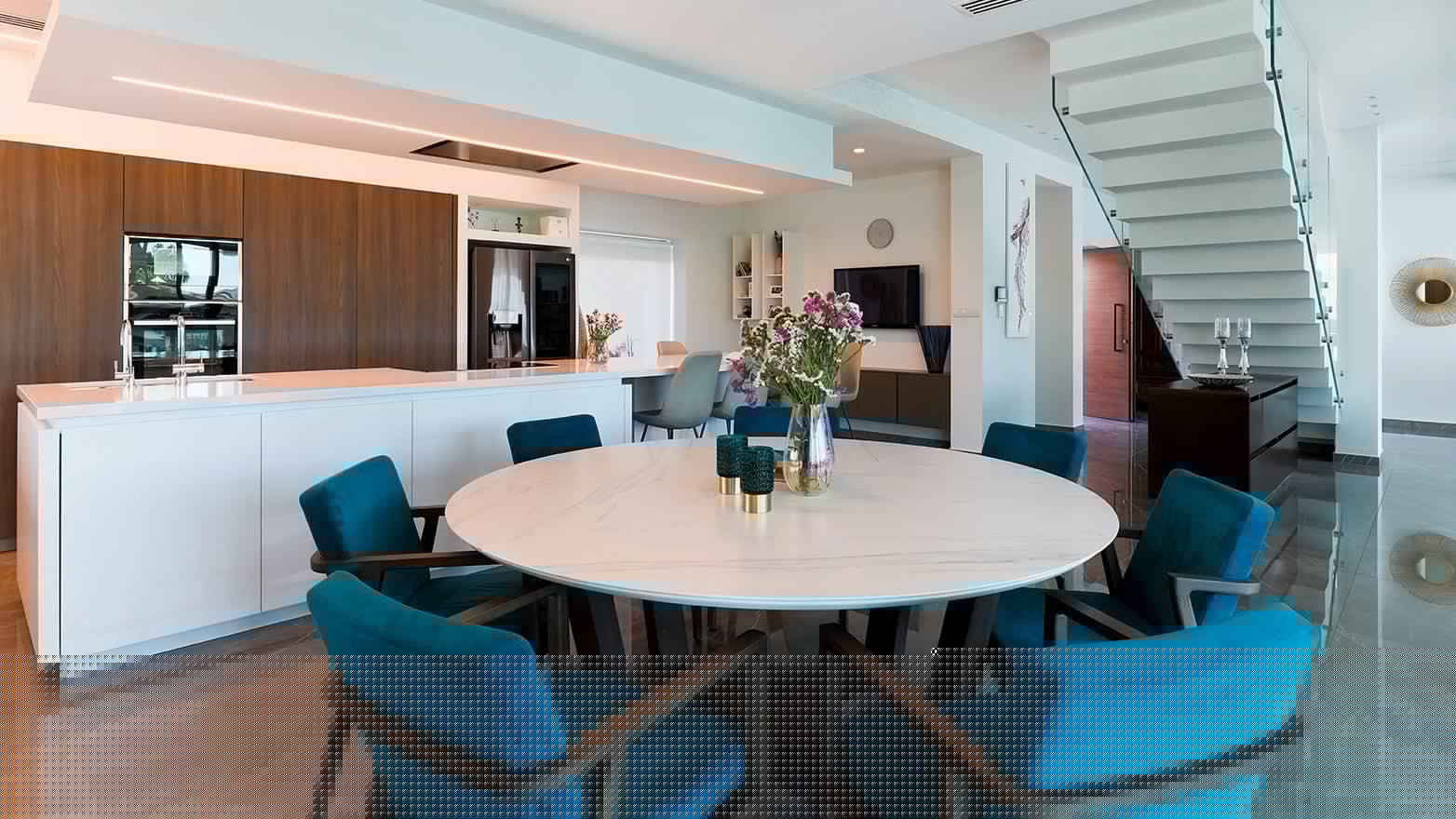 For this modern residence, the interior team approached the design process in a multiple direction principle, as each area expresses different needs and attitudes.